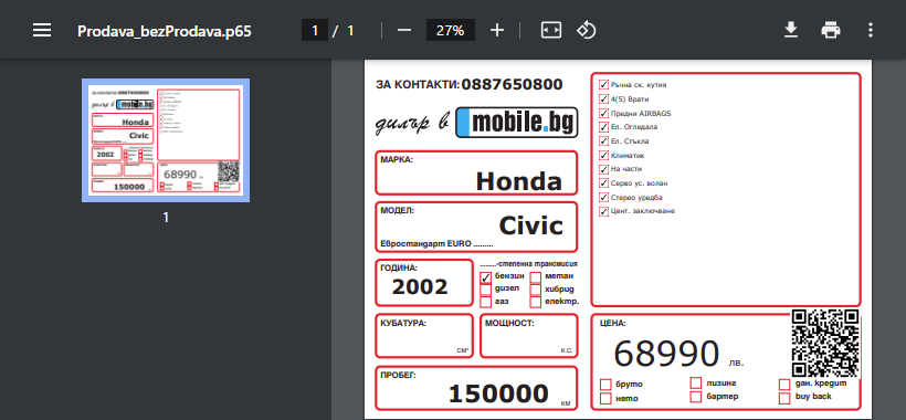 Датата на последна редакция на Вашата обява ще бъде променена на 10:20 часа / 19.03.2024.